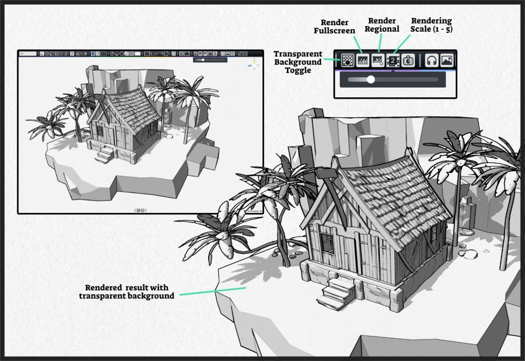 Rendering scale is based on your screen resolution multiply by selected render scale (i.e. 1920 pixel width X 2 (scaling modifier) = 3840 pixel width). Most often you don’t need to anything higher than 2, though higher modifier is provided whenever the need arises.